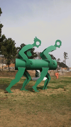 船着場より信島行きフェリーに乗車、信島で下り、信島船着場よりマウルバス乗車し、茅島里で下りて、1kmほど道なりに歩くと右手に曲がると彫刻公園がありました(T-T)