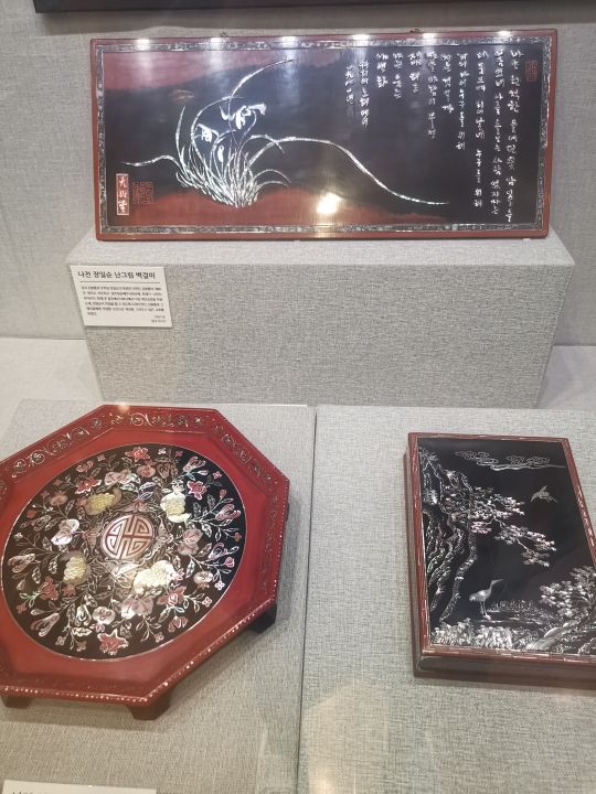 草鞋、男性の帽子「カッ」、製紙などの伝統工芸展示も渋い雰囲気ですが、注目すべきは2階の「金奉龍」展示室です。掲示は韓国語のみですが、螺鈿細工の材料などを見られます。