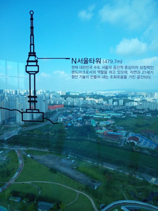 河南ユニオンタワー園内はテニスコート、フットサルコート、バスケコート、水遊ぶ場があります、タワーは無料で105m高さです、河南市が一望です、ソウルのロッテワールドタワーも見えます、