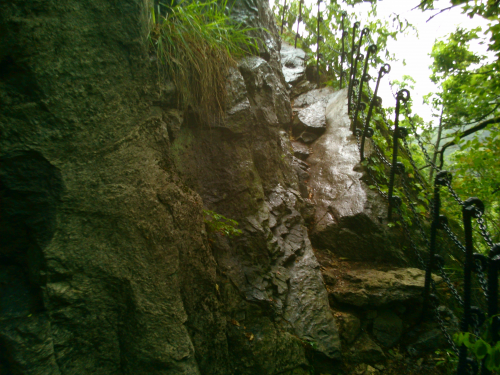 最初の岩を登る場所から道詵窟に到着するまでの通路は