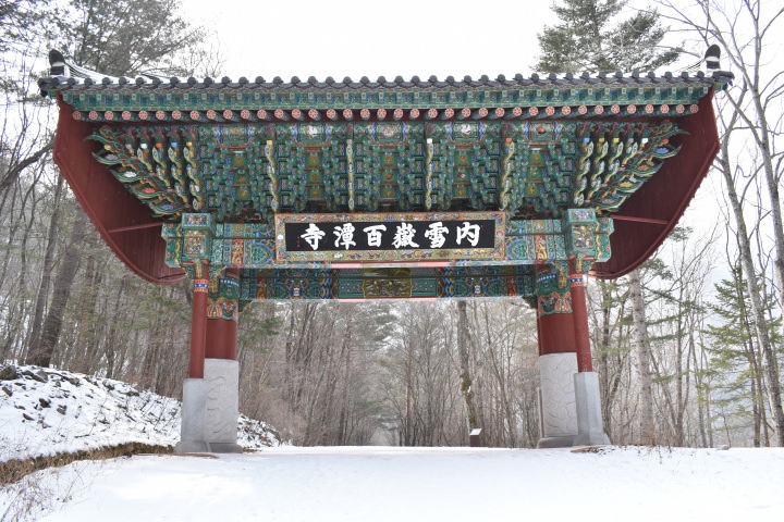 利用日:2019.02.15お気に入り追加登山という程に大袈裟な登りでも悪路でもありませんが、雪岳山の魅力と雪景色を味わいに、今回は西側からのアクセスを試みました。目指すは百潭寺です。山への登り口に入山管理所とでもいうのでしょうか建物があって、「何処まで行きますか?」とお決まりの質問をされます。「アイゼンが必要ですか?」と訊くと「雪が少ないし凍ってないので滑りませんよ。」という返事だったので真に受けて、10m歩いたところで見事に滑りこけましたということで、一人爆笑。