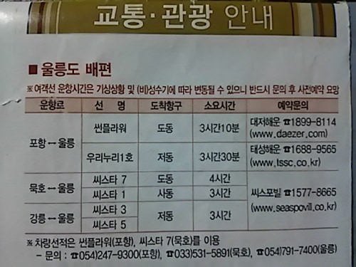 鬱陵島へは浦項、東海、江陵から船が出ているようで、