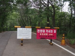 展望台は民間人統制線の内側にあるので、手前の「愛妓峰出入申告所」で所定の手続きが必要です。施設管理料として2000ウォンを払います。