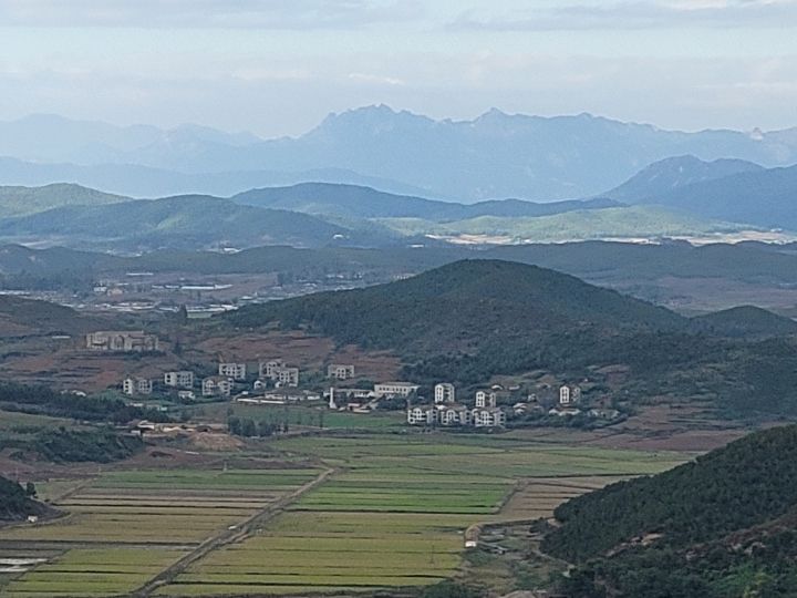北朝鮮が見える展望台は初めてですが、肉眼でも想像以上に北朝鮮が近く見え、望遠鏡で見ると集落の様子や20~30人が農作業などをしている様子がよく見えました。