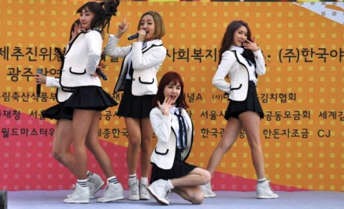 11月14日昼ごろ市庁広場のステージで5人組女性グループが歌っていました。キムジャン祭のゲスト、寒かったので皆コートを着ていました。グループの名前を教えてください。可愛い女の子たちでした。ハート型にテーブルは並べられ用意されたキムチの材料はテーブルの上で係りの人と少しの客しかいませんでした。 その後 キムチの展示と試食コーナーを巡りましたがいろいろあった中でチョングッチャンのキムチが珍しく、美味しかったので買って帰りました。臭いはいまいちだけど、初めて出会ったキムチでした。
