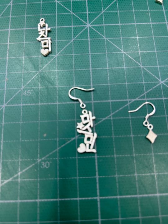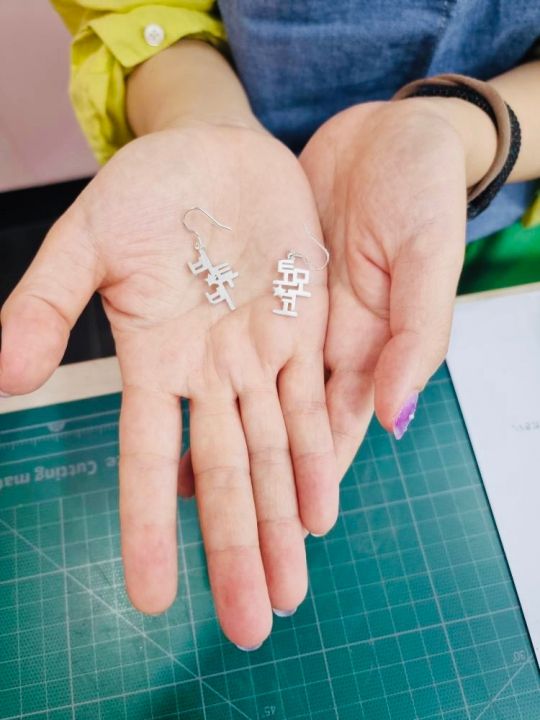2時間の予定でしたが、生徒が私一人でサクサク進んだので1時間ほどで終わりました。出来上がりも、とても満足できました☆今回は私の推しの名前のピアスを作ったので、今度行った時にはネックレスを作ろうと思います♪楽しい体験をありがとうございました! -