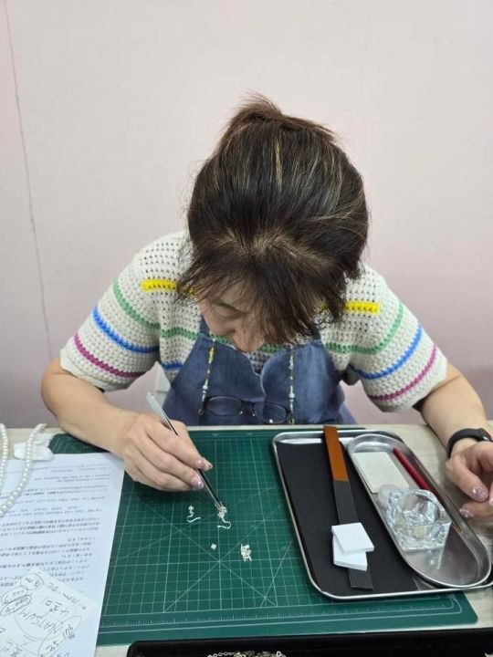 先生は久しぶりの日本からの参加者さんだと喜んで迎えて下さって、日本語や英語、韓国語を交えて気さくに話したり、説明や補助もしていただきながらアクセサリーを作れました!