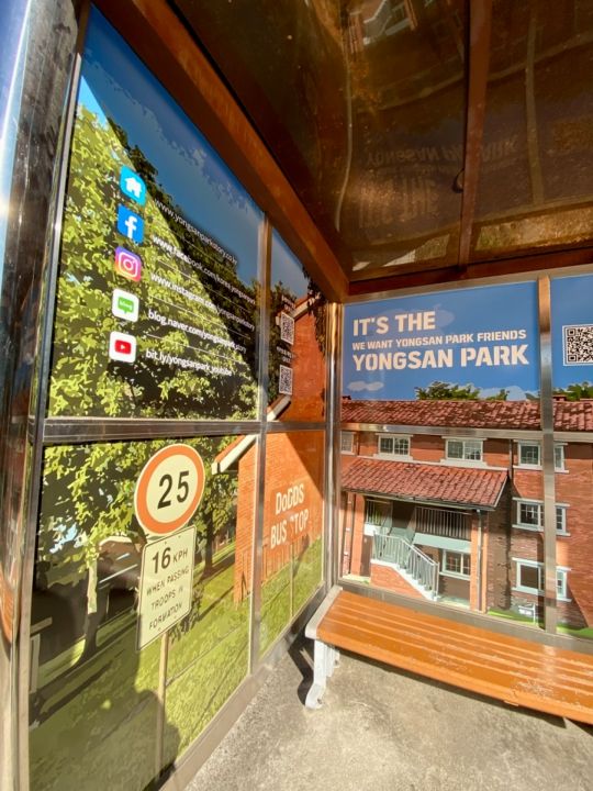 最寄りのバス停は、서빈고역사거리です。バスを降りて、龍山家族公園の方向へ向かうと、バーが降りたゲートがあり、その奥の案内所を通って入場します。