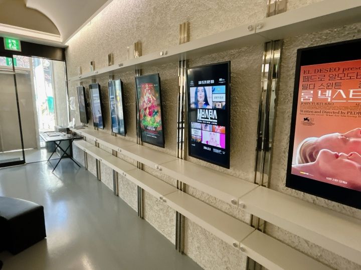 上映館は1つのみ。こぢんまりとしてますが肘掛けが大きめでゆったりとした席はシネコンよりも楽に座れます。