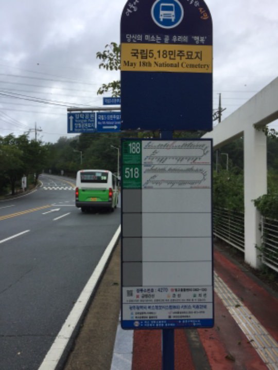 現在 518バスは 光州駅から民主墓地に行く場合、光州駅西にだけ停まり、 戻る時は光州駅東にだけ停まるようです。ご注意下さい。