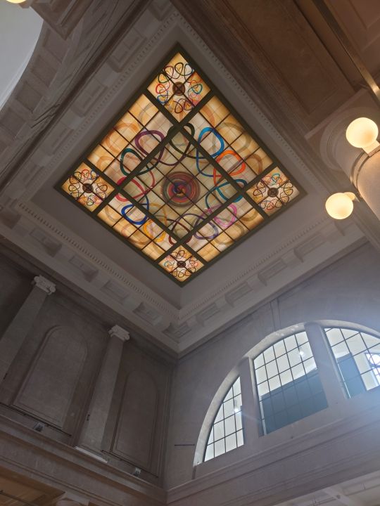 館内は真っ白で統一されていて、天井には素敵なステンドグラスが
