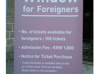 「外国籍、在外国民、外国人観光客は当日券のみで購入可能です。期間中、当日券は景福宮のチケット販売所にて500名先着順で外国人に販売される予定です(外国人登録証もしくはパスポート持参必須)。」との記載がありますが、