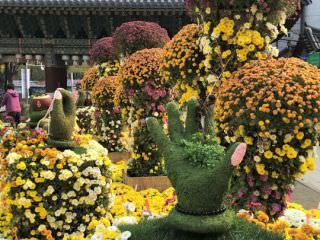 菊花祭りとは知らずの訪問で偶然ですがラッキーでした。お寺の回りには、菊がふんだんに使われてあり、とてもキレイでした。日本人の感覚では、宗教的にこれはいいのか?と思うものもありましたが国が違えば宗教も違いますから笑