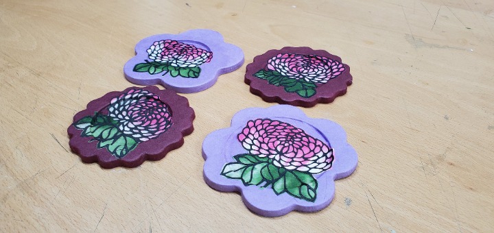 先生と色々なお話をしながら、楽しい時間が過ごせて、可愛いコースターが出来上りました。素敵に年を重ねられた先生は、これからも新しい事にチャレンジされるそうです。又伺う機会を作りたいと思います。どうも、ありがとうございました。