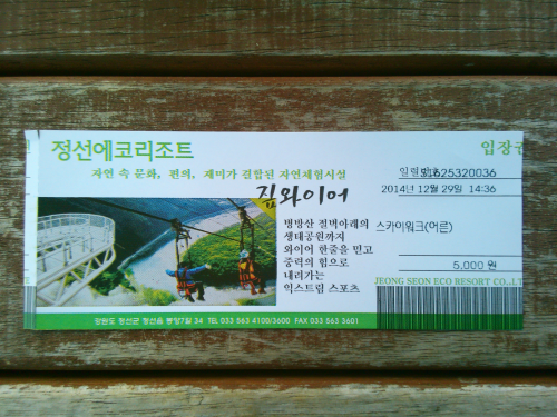 ジップワイヤーは今回乗らなかったのですが、35,000ウォンだそうです。