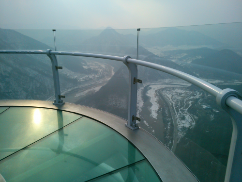 韓半島というよりは茄子のような形の風景が広がり、とても素晴らしい景色に、先ほどまでのイライラが晴れていきましたが、眼下に深い谷が見えるガラス張りの床は、妙にソワソワしてしまい落ち着きません。
