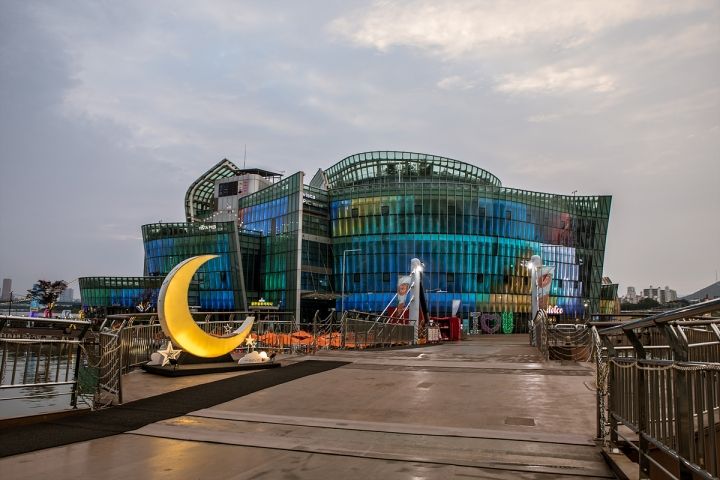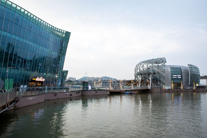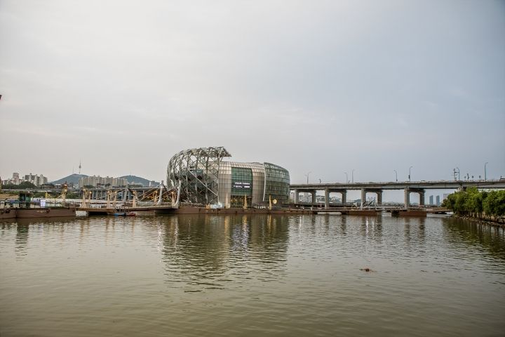 盤浦大橋の近くにあるセビッソム(세빛섬)は、漢江の上に作られた3つの人工造形物で構成されています。