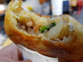「プルコギホットク」も一口。想像していなかったピリ辛味付けに韓国を感じました(笑)。