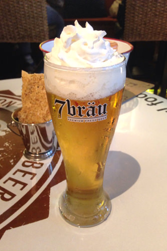 クリーム生ビールに対抗したのか、ビールの上に本当の生クリームをのせた「生クリームビール」が味わえるお店です。