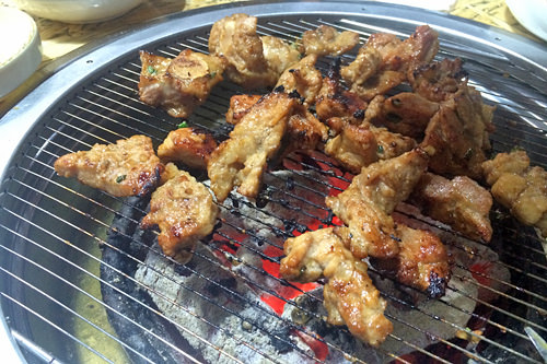 味付けカルビって大抵1万ウォン前後するイメージがあったので、このお店は安い分、量が少ないのかな?と思いきや、1人分200g。しかも食べてみるとお肉も柔らかく、日本人好みの甘いタレがいい感じに染みこんで美味!思わず、これで5,900ウォンでいいの?と首をかしげてしまいました(笑)。ちなみにメウンマッ(辛口)もあったので、辛い物好きの方は是非こちらもお試しあれ。安くて美味しいので、これから給料日前にはお世話になりそうな予感です。