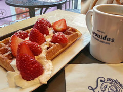 感想はビンゴ!!!甘酸っぱい苺てんこ盛り、ふわっふわクリームがアツアツ焼きたてカリぷわワッフルにたっぷり添えられていて、空腹をあま~く満たしてくれました♪