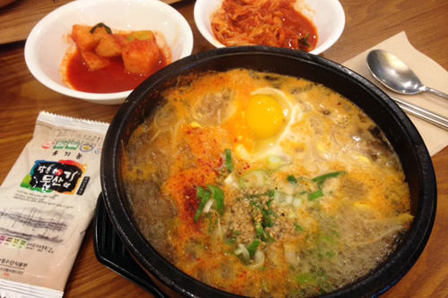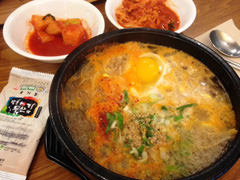 ここのコンナムルクッパは、私が今まで食べたものと比べると大分あっさりめ。スープはコンナムルの自然な風味が感じられ、その他のダシは強くない印象。正直なところ、最初は薄味に感じたのですが、食べれば食べるほどおいしさが増してくるから不思議です。飽きのこないこのシンプルな味つけが、むしろサンベッチッが愛される理由なのかもしれません!