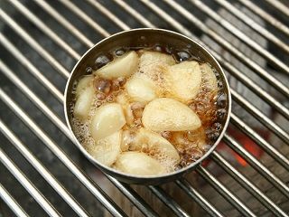 韓国の焼肉屋さんでメニューにはないけど、お願いすると出してくれるのがごま油に浸けたニンニク。これを焼き網の上に載せ、「焼く」と言うよりもごま油で「煮る」とホクホクのニンニク焼きが出来上がります。