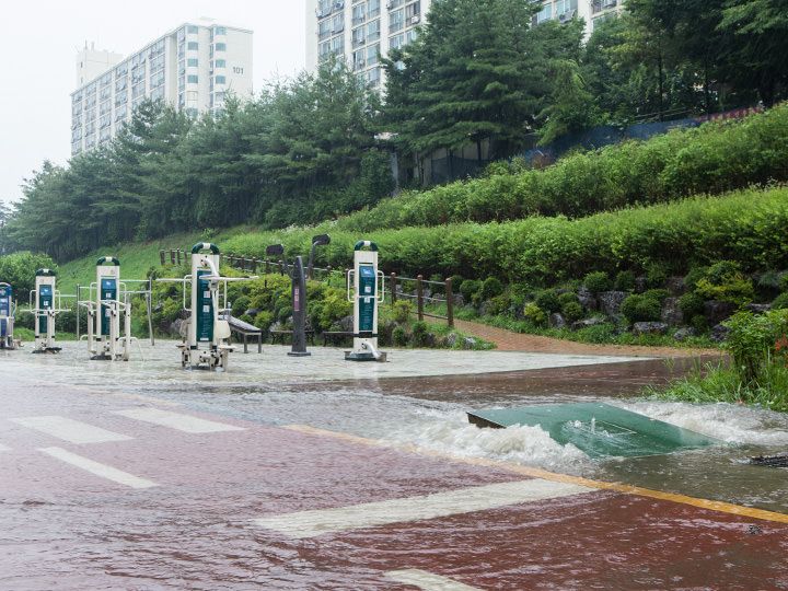 韓国語で「大雨注意報、大雨警報」のことを「호우주의보(ホウチュイボ)」といいます。「호우(ホウ)」は漢字で書くと「豪雨」です。