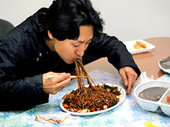 俺、今日朝ご飯食べられなかったから、ジャージャー麺大盛りで食べるわ。
