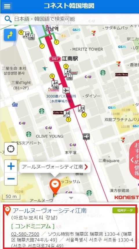 ・目的地(목적지)の住所