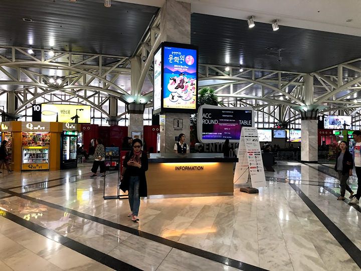 地下鉄駅構内から連結しており、2・7番出口方面にターミナルへの案内標識があります。ハングルと英語が併記された標識に従って進みましょう。