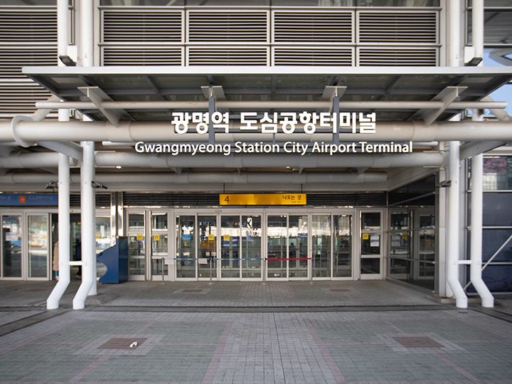 また都心空港ターミナルが駅構内にあります。事前搭乗手続(事前チェックイン)をして、光明駅からリムジンバスに乗車すれば約50分で仁川空港に到着します。
