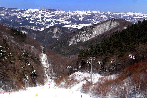 スキー場「ヴィバルディパーク スキーワールド」までは、楊平駅からのシャトルバスで約50分。