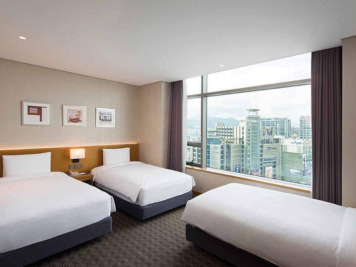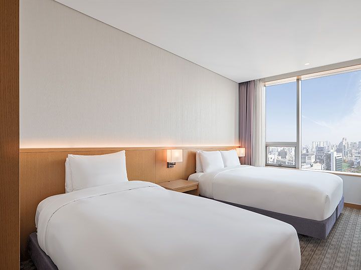 大きな窓のある客室からは、東大門の景色を一望できます。ホテルにはレストランや、宿泊者が無料で利用できるフィットネスもあります。また、こちらのホテルでは、独自のランドリー施設を保有しており、リネン類が常に清潔に保たれているのもポイント。