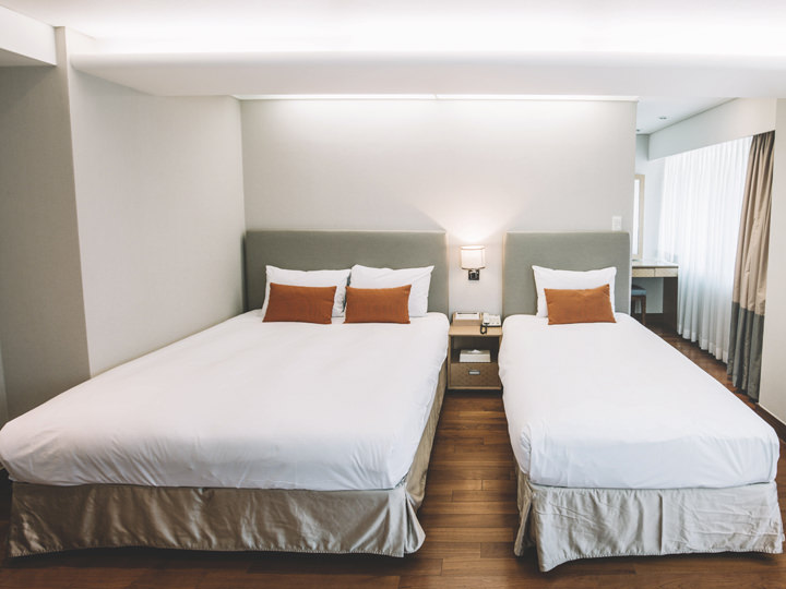 客室は現代的なインテリアで、落ち着いた雰囲気。日本からの宿泊客が多く、日本語が可能なスタッフもいるため、旅行中に困ったことがあれば気軽に尋ねることができて安心です。