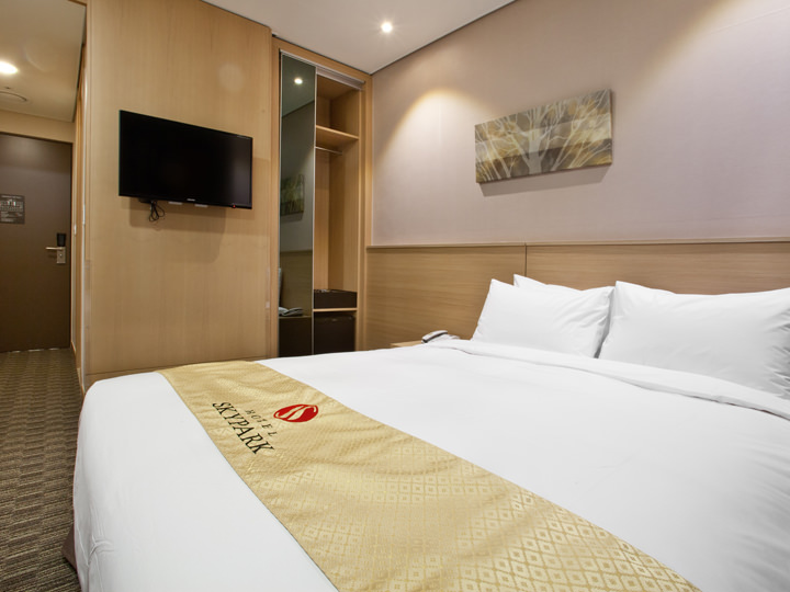 ホテル客室はシンプルで清潔感漂う雰囲気。全室にバスタブと洗浄機付トイレが設置されており、旅の疲れをゆっくり癒すことができます。駅チカで用途に合わせた買い物を楽しめる「ホテルスカイパーク 東大門 1」で、韓国旅行を満喫してください。