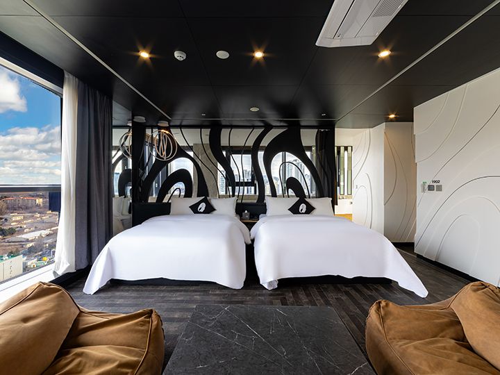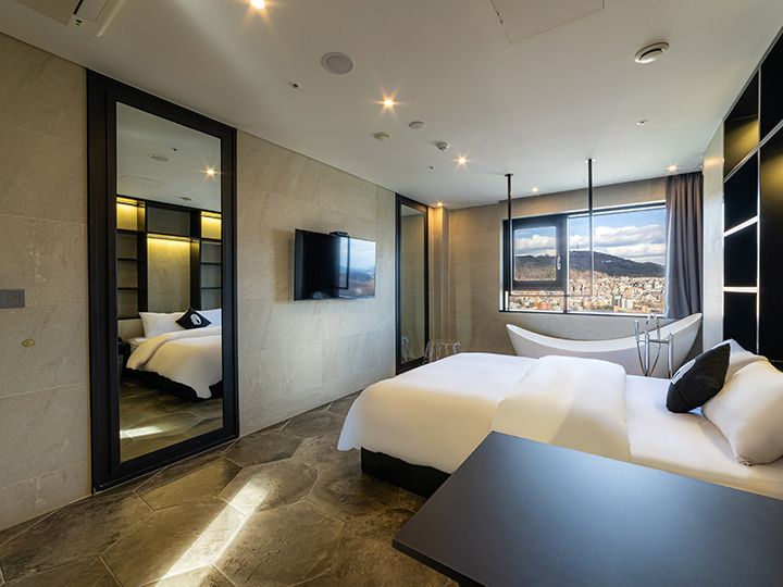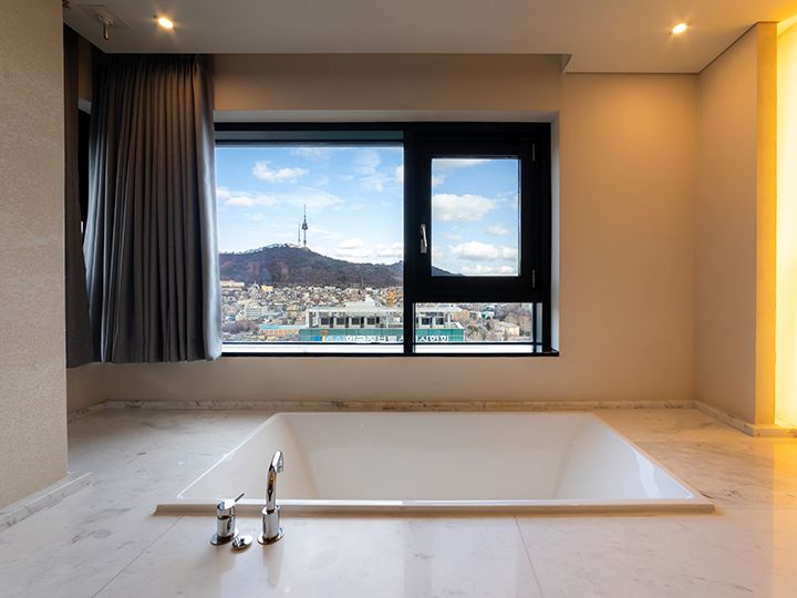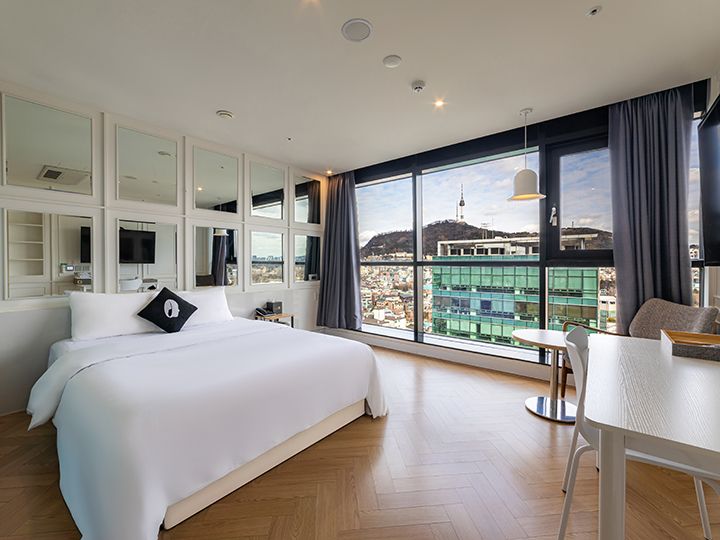 客室は、部屋毎に異なるコンセプトのインテリアが特徴の人気ホテルブランドならではのおしゃれさ。洗浄機付きトイレ・バスタブが完備され、観光やショッピングの疲れをゆっくり癒すことができます。そして、ビジネスツインルーム以外の全ての客室から「Nソウルタワー」が見え、ソウルならではの景色を楽しめます。
