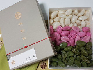 | 一方、韓菓は米や小麦粉、木の実などを原料に作られ、韓国では先祖供養の儀式に欠かせない食べ物であるほか、お茶請けとしても好まれています。もち米粉で作った生地を揚げたふわふわした食感の油菓(ユグァ)や小麦粉をごま油・蜂蜜で練って揚げた薬菓(ヤックァ)などがポピュラー。ごまやナッツを水飴で固めたカンジョンや日本のおこしやせんべいに似たものなど色んな種類があり、デパート内の専門店や餅店、市場、マート、韓国土産店などで購入できます。市場は量り売りが多く、安価ですが包装は簡便。改まったお土産なら専門店がおすすめです。 | ||||