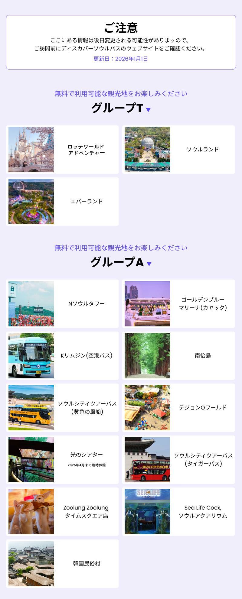 →「ディスカバーソウルパス」利用で、施設の利用料が0ウォン(無料)に!