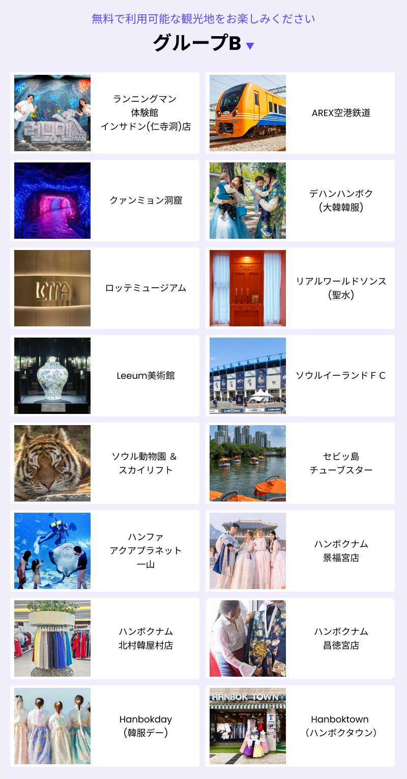 施設だけでなく、eSIM(5日)や鉄道チケットも無料になるなど、韓国・ソウル旅行に欠かせないアイテムです。